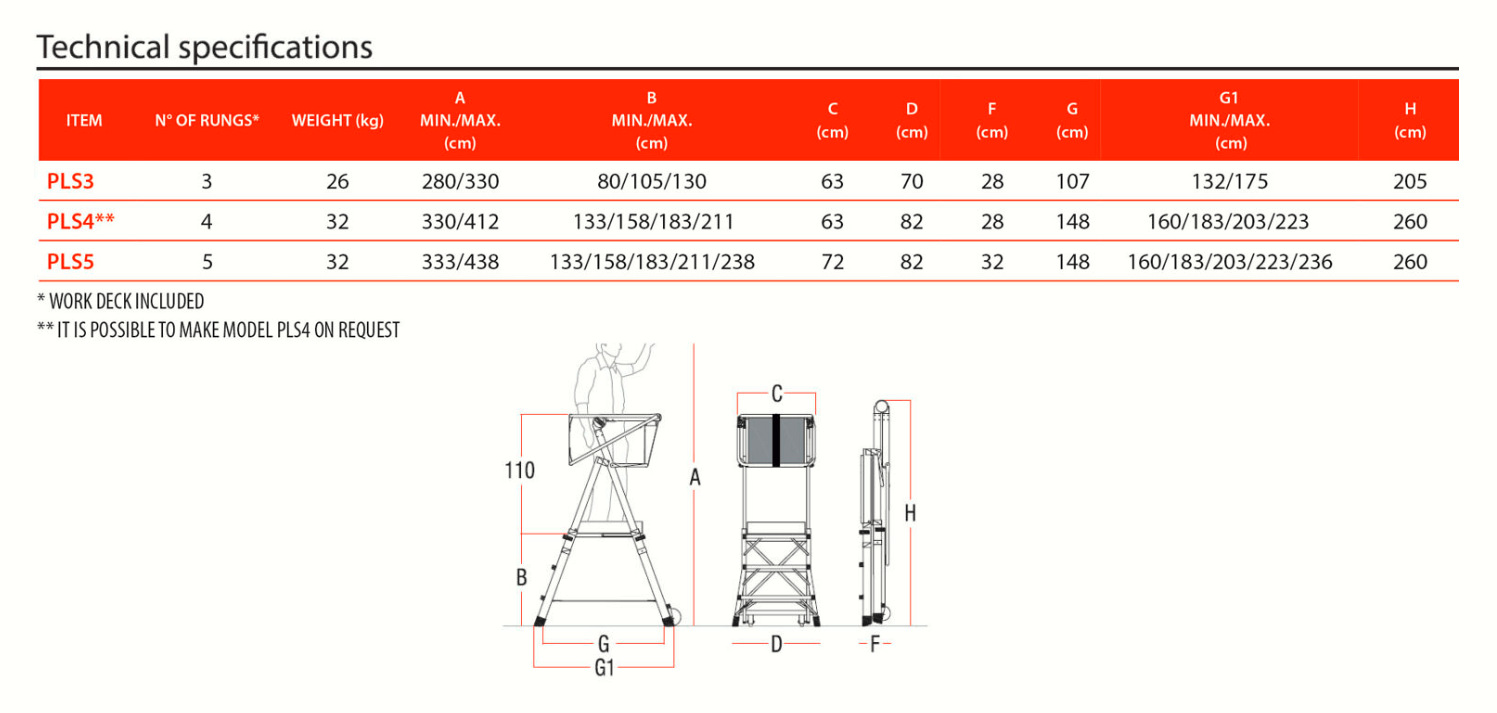 | PARAMETRAI | PLS3 darbinis aukštis 2,80/3,30m, PLS5 darbinis aukštis 3,30/4,38m |