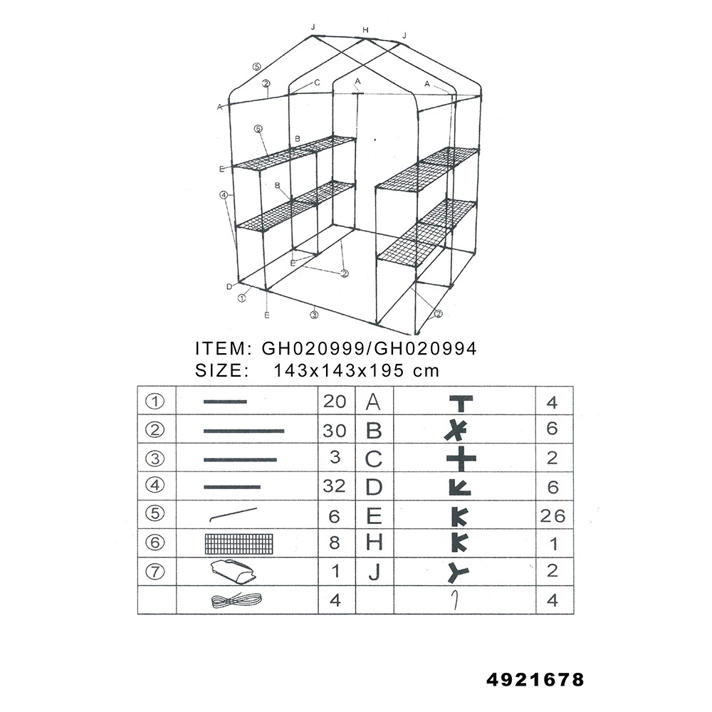 Šiltnamis su 4 lentynėlėmis 143x143x195 cm su armuota plėvele