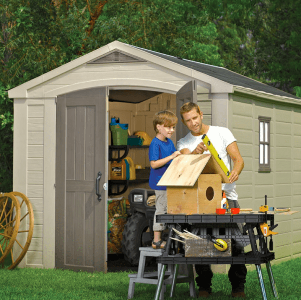 Funkcionalus sodo namelis FACTOR 8×8, patenkins net išrankiausius vartotojus. Sustiprinta plieninė konstrukcija, plačios, dvivėrės durys, šviesos duodantis langas – tai neabejotini šio produkto privalumai. Namelio interjerą galima optimizuoti įrengiant lentynas ir pakabas. Pagamintas iš aukštos kokybės plastiko, nereikalauja priežiūros, nerūdija, jo išorinė danga nesilupa, nepūva.