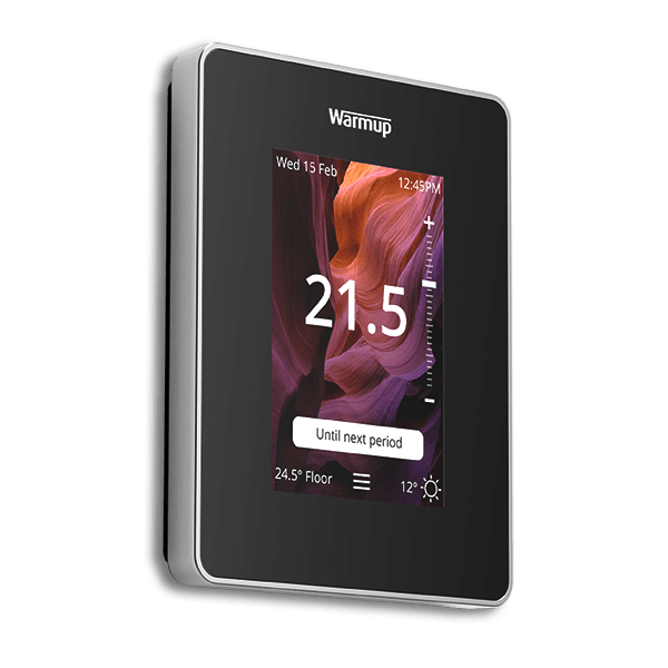 Warmup 6iE yra pirmasis pasaulyje UFH termostatas su išmaniojo telefono jutikliniu ekranu, užtikrinančiu lengvą valdymą rankomis