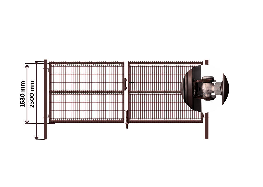 Vartai yra cinkuoti ir padengti rudai dažais. Karštas cinkavimas užtikrina vartų atsparumą korozijai ir gražią išvaizdą ilgus metus. Komplekte – sustiprinti vyriai, stulpai, spynos komplektas.