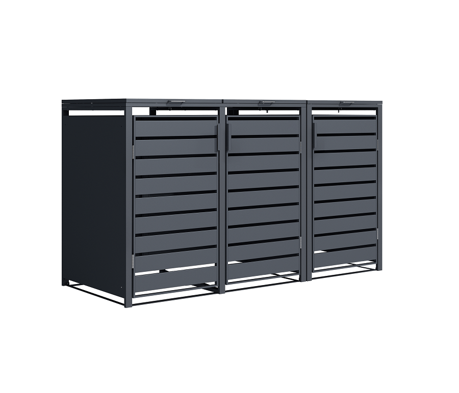Šiukšlių konteinerių pastogėje telpa trys 60, 120 arba 240 litrų talpos šiukšlių konteineriai. Dėl šios pastogės jūsų šiukšlių konteineriai bus nepastebimi ir visuomet tvarkingai sandėliuojami. Gaminys turi dangtį, todėl norint ką nors išmesti nereikia išstumti konteinerio, kadangi komplektacijoje yra kabliukas ir virvutė, kuriais galima pritvirtinti šiukšliadėžės dangtį prie pastogės dangčio.