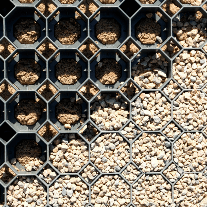 - Leidžia lietaus vandeniui natūraliai įsigerti į gruntą, kas neįmanoma esant vandeniui nelaidiems paviršiams (pvz. betono ar akmens trinkelėms);