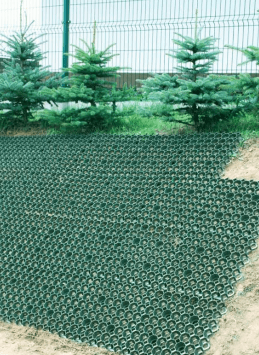 Žolės/vejos koriai – plastikinė korinė danga – pagaminti iš perdirbto polietileno (HDPE).